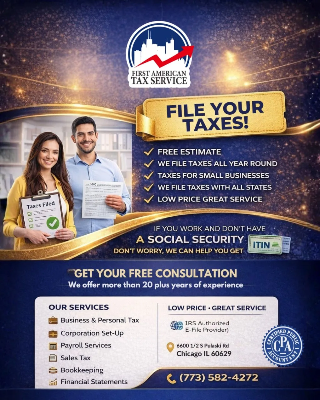 America’s Income Tax Service is a tax preparation and bookkeeping-oriented business serving clients in Chicago, Illinois.