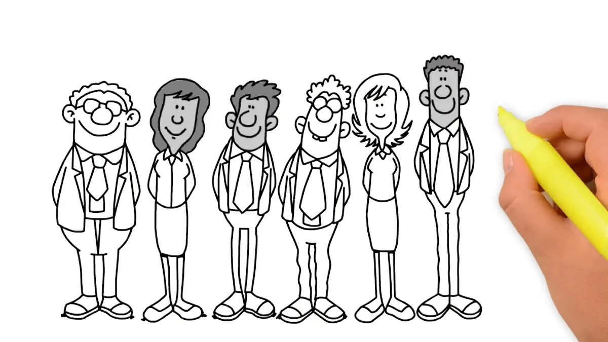 Who sits at the desk.