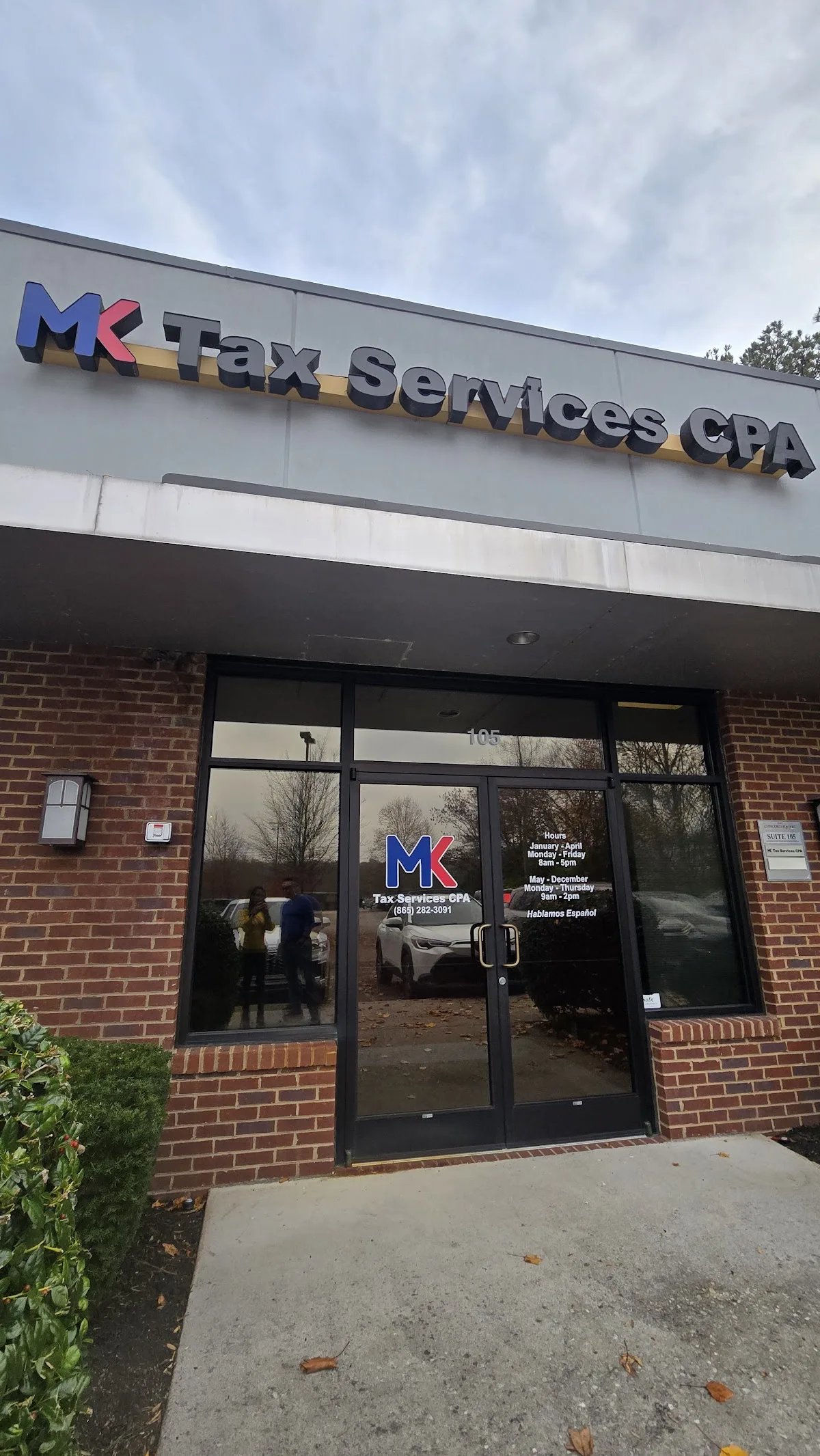 MK TAX SERVICES -CPA is a tax preparation and professional accounting support office located in Knoxville, Tennessee at 11002 Kingston Pike, Suite 105.