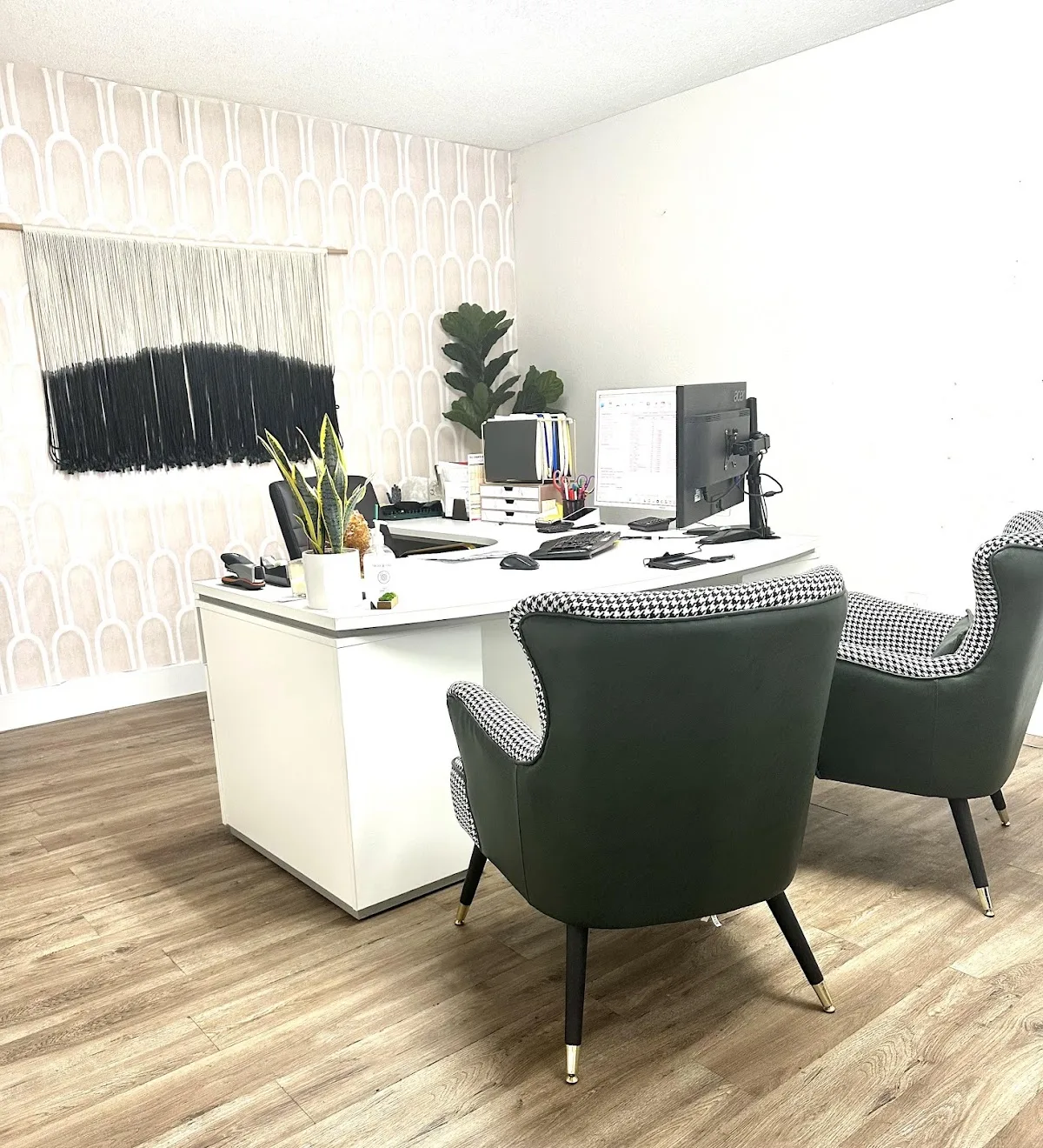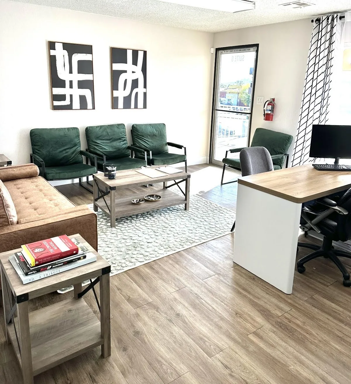 Has pics of his family in his office.