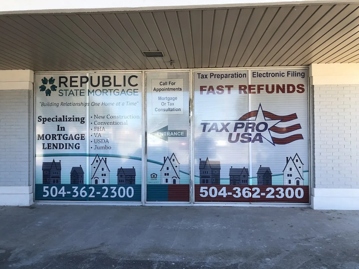 Tax Pro USA is a tax preparation business serving clients in the New Orleans area, with a listed address at 1800 Carol Sue Ave #7a, Gretna, LA 70056.